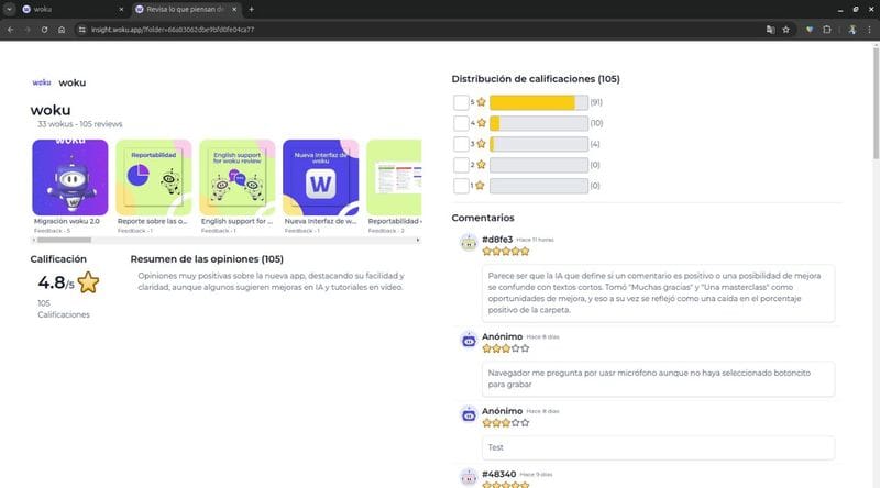Aquí es donde woku puede marcar la diferencia. woku permite a las empresas visibilizar las reseñas de sus clientes con un simple enlace. En lugar de depender de encuestas largas y tediosas, las empresas pueden compartir una imagen o video del producto o servicio que desean evaluar mediante un QR, enlace o en sus propias aplicaciones. Los clientes pueden calificar de 1 a 5 estrellas y dejar una reseña en texto o audio en menos de 2 minutos.